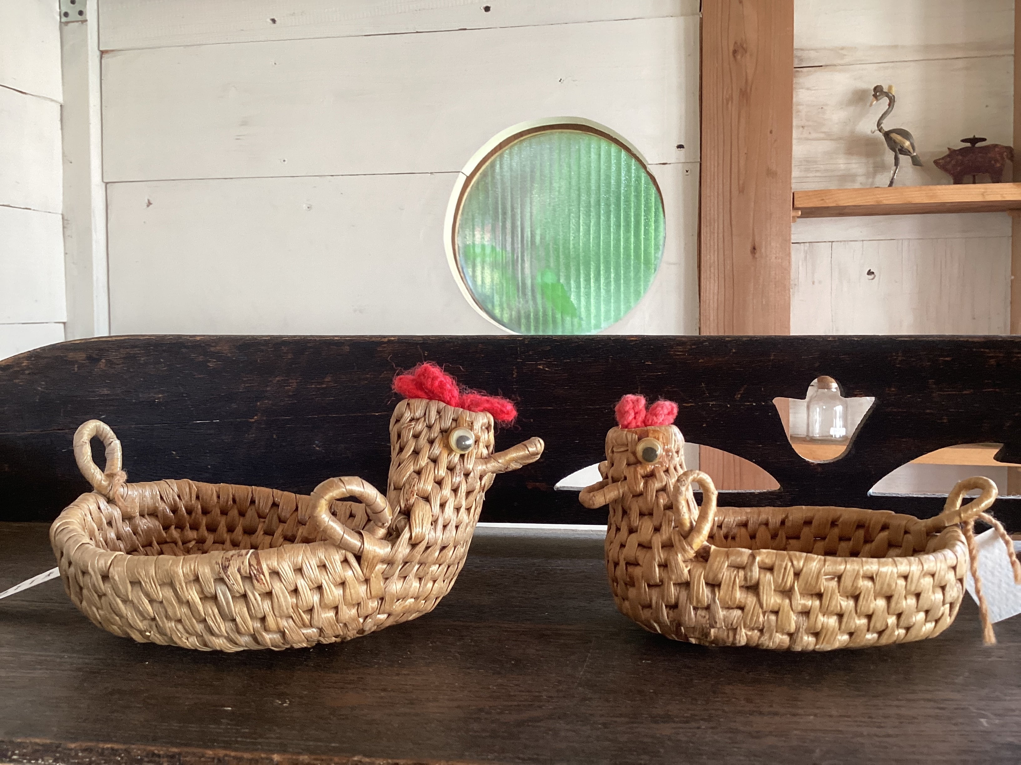 タイで買い付けてきた ニワトリのかご。 大きいものは、ほんまに卵をのせてもいいし、 アクセサリートレイとか、鍵や、細々したものいれたり。 お店ではショップカード入れてます。 サイズ:約12cm×7cm