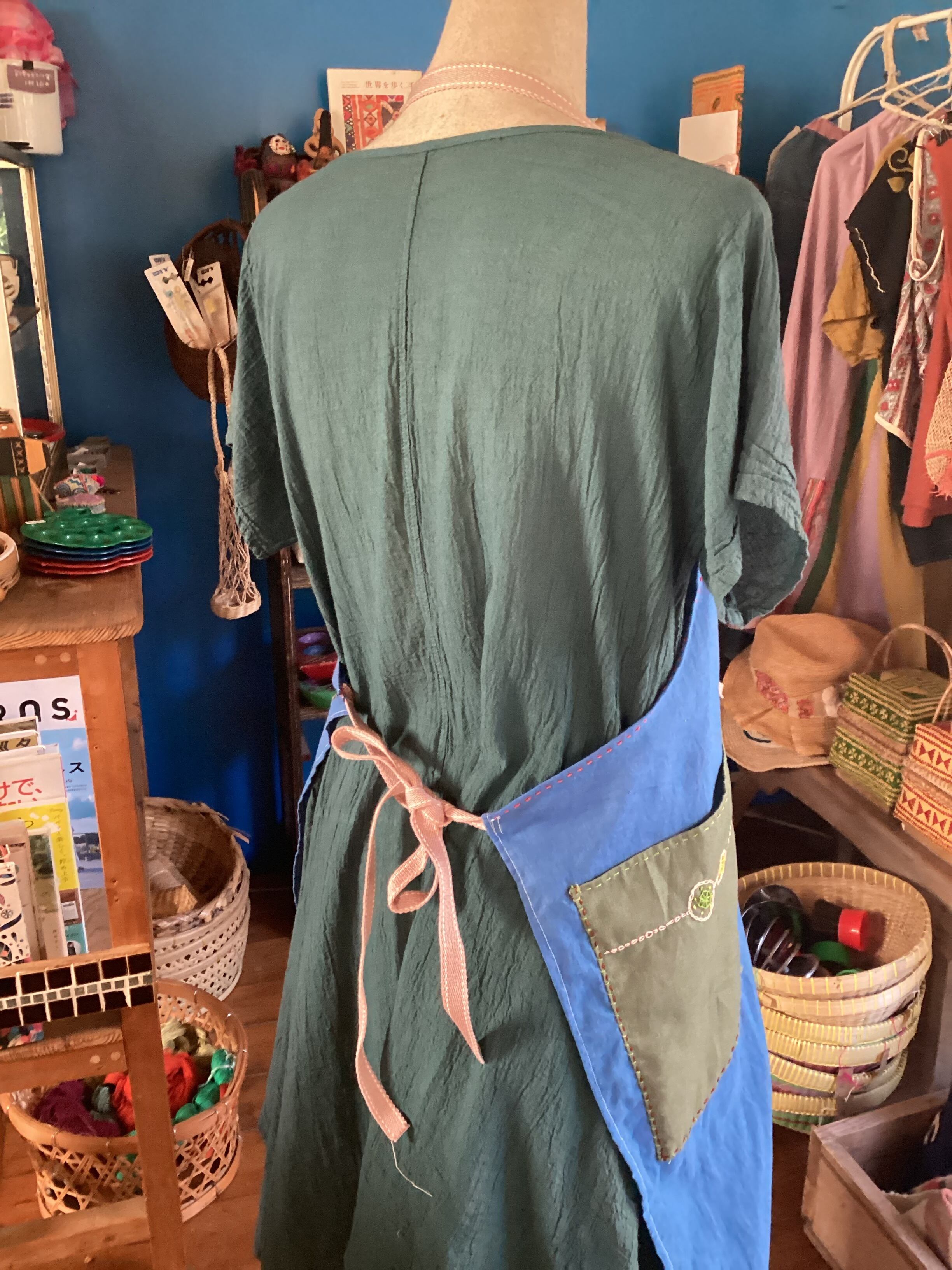 軽やかで柔らかな素材感は、ストレスのない着心地を提供し、料理やお菓子作り、日常の家事など、さまざまなシーンで大活躍します。しっかりとしたポケットが付いているため、必要な道具をすぐに取り出せるのも嬉しいポイントです。