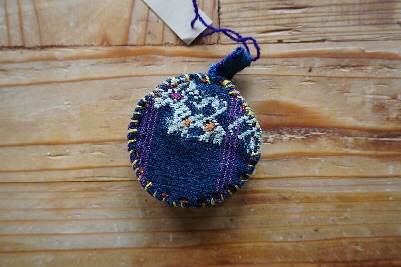 まるいメジャーを旅の布で包み込みました。 お裁縫箱にはいってると気分があがりそうなやつ。 お裁縫好きのあの人にプレゼントしても◎ ::: こちらは、グアテマラのナワラという村の古布です。