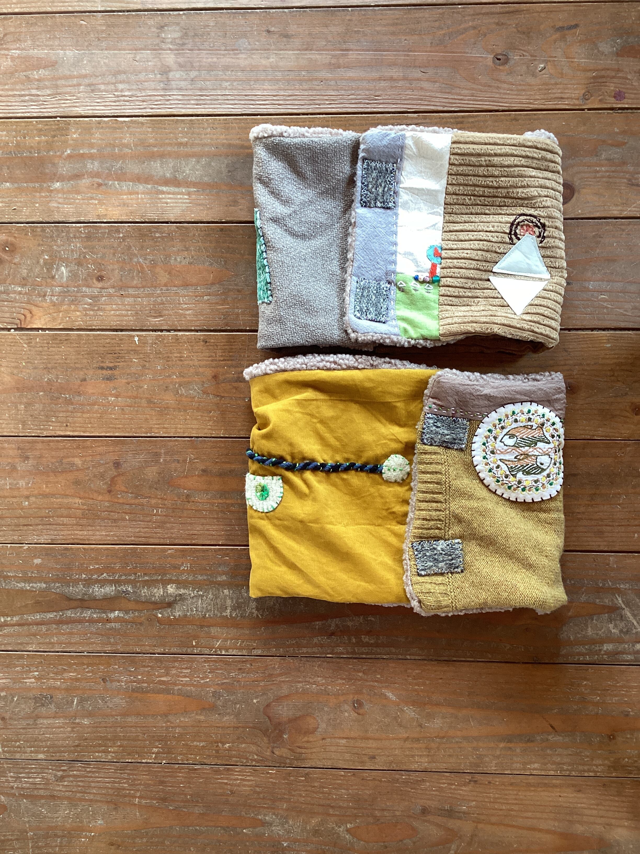 カラフルで派手なように見えますが、意外と何にでもあわせやすいネックウォーマーです。